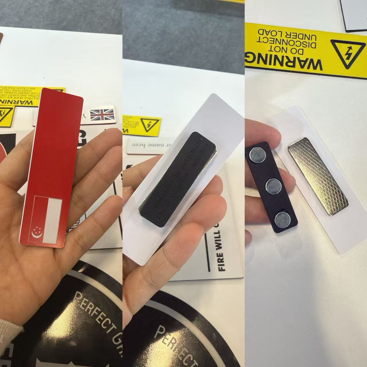 - Logotipos gravados personalizados, placas de série e placas de classificação